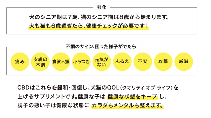 自身の身体で健康のバランスを取れる若い時と違い、人間と同様にペットも、加齢により健康のバランスをとる力は弱っていきます。